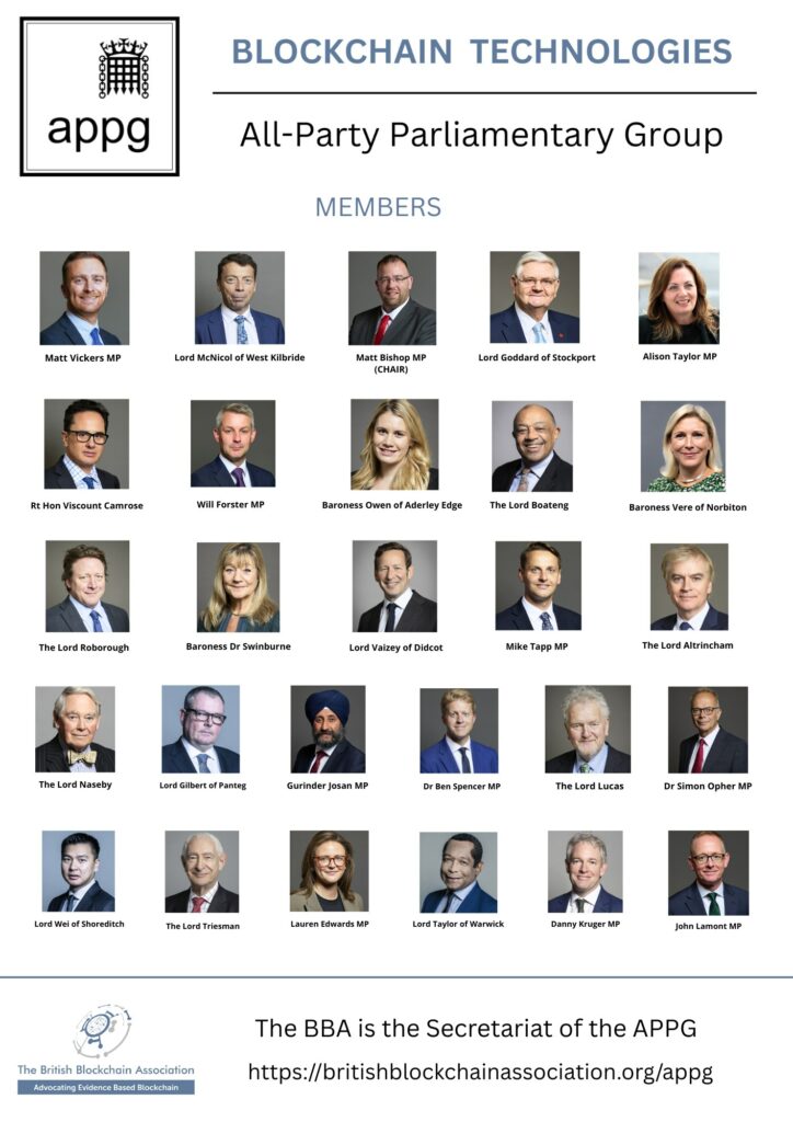 The APPG for Blockchain Technologies is made up of cross-party MPs and Lords who bring a broad range of expertise from sectors including cybersecurity, DLT for public good, research and education, workforce planning, financial services, foreign affairs, digital innovation, public policy, international trade, culture, arts, Cybersecurity, and emerging technologies. The inaugural Annual General Meeting (AGM) of the APPG was held on 17 March 2025.