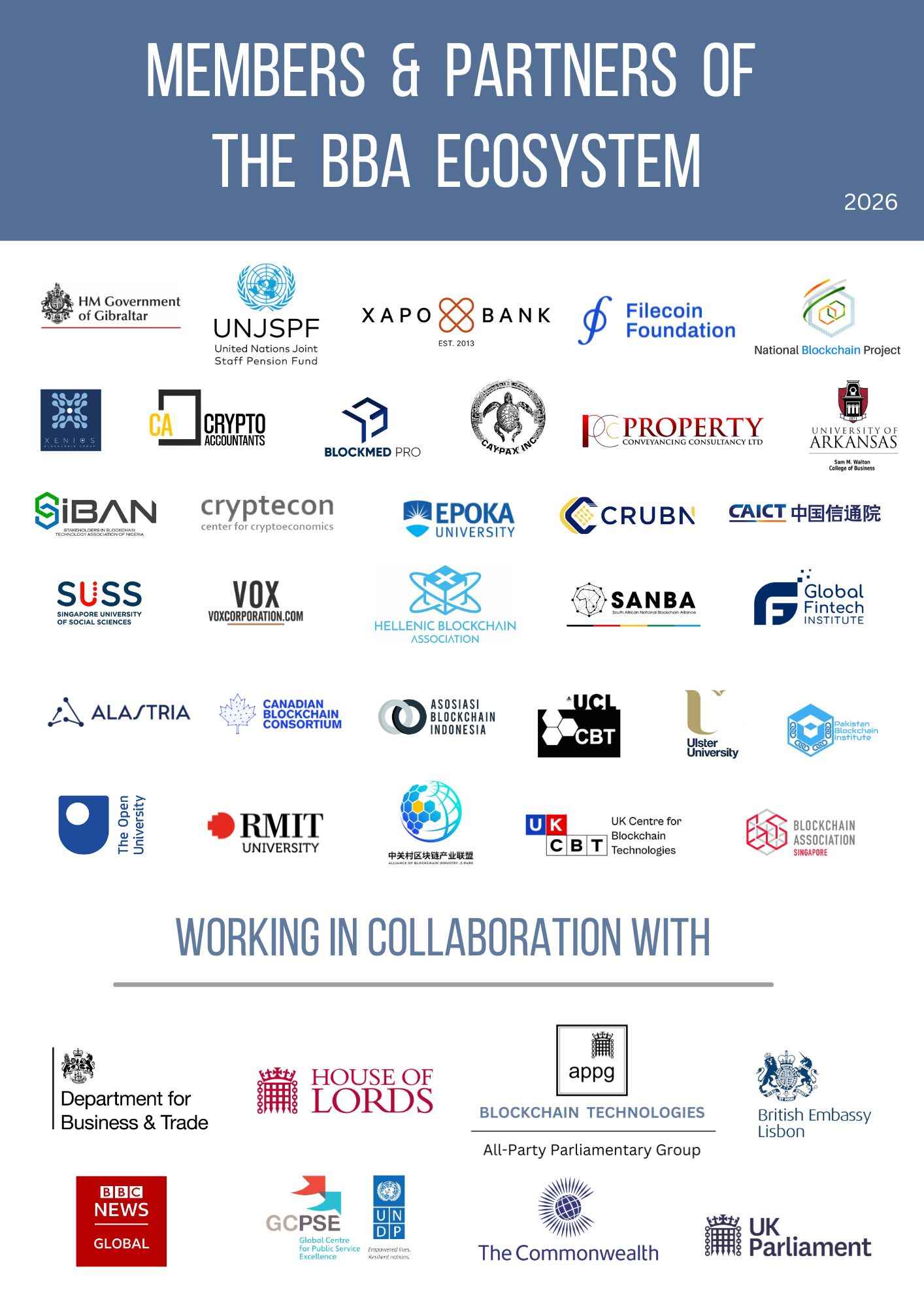 We foster Quadruple Helix Blockchain Innovation Ecosystem BBA MEMBERS & PARTNERS What we do for our Members Join The BBA